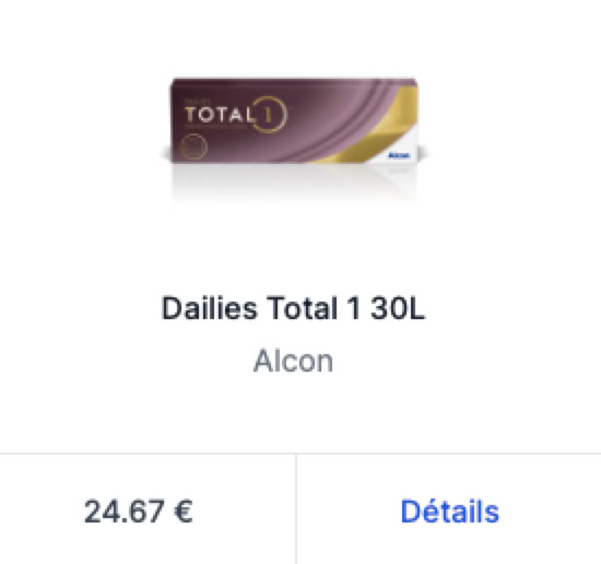 Le nouveau site Français de lentilles de contact pas chères avec une large gamme jetable et mensuelle, Lentilles de Couleurs, Paiement Sécurisé, Satisfait ou Remboursé, Livraison Rapide en France, Belgique, Monaco, Corse et Sans ordonnance à envoyer !